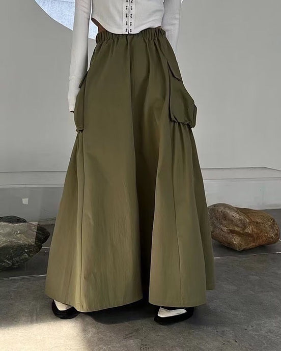 It comes with a semi cropped top and semi high waist skirt with pockets!