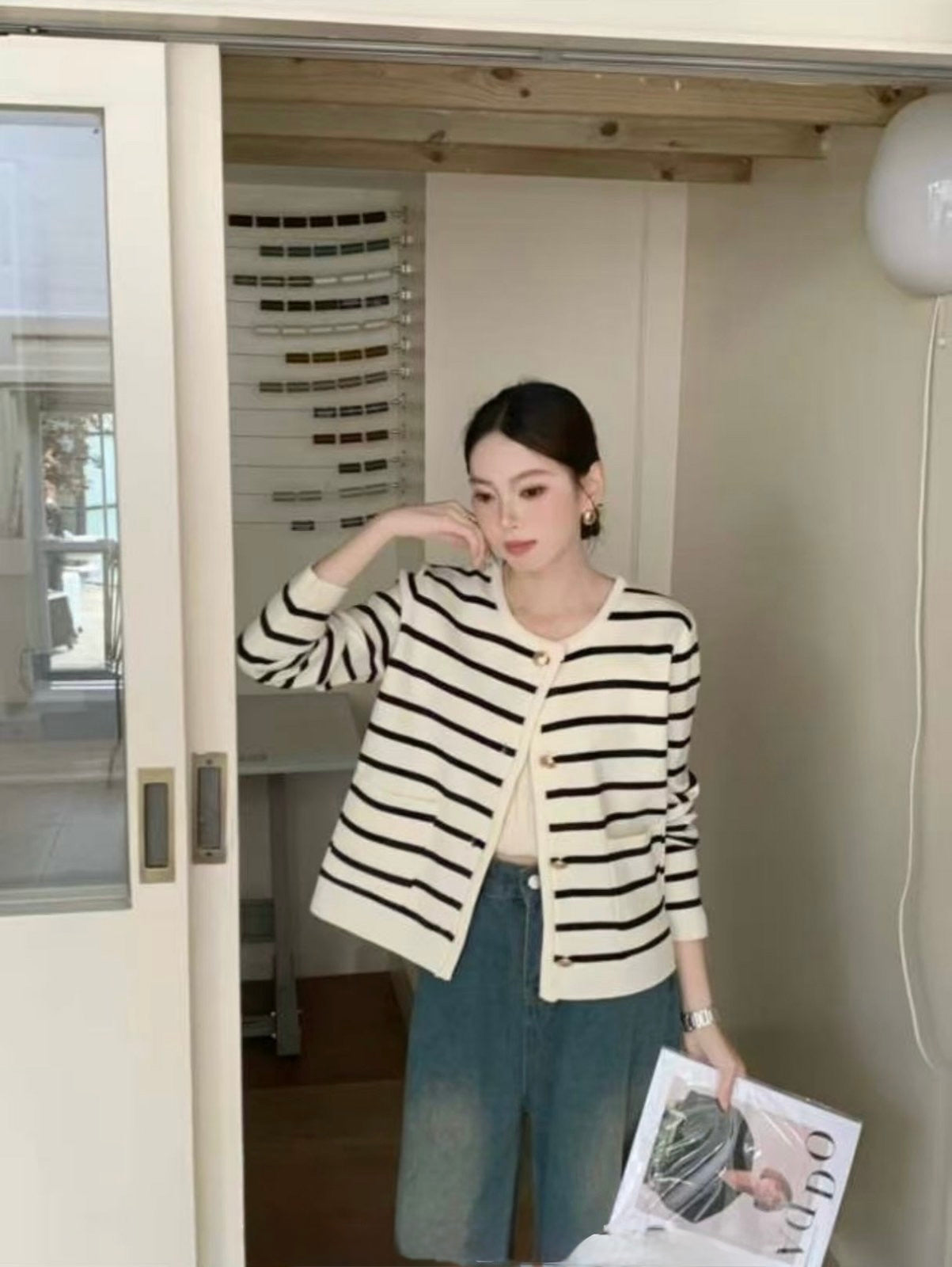 colors: cream, black, stripes white, stripes black