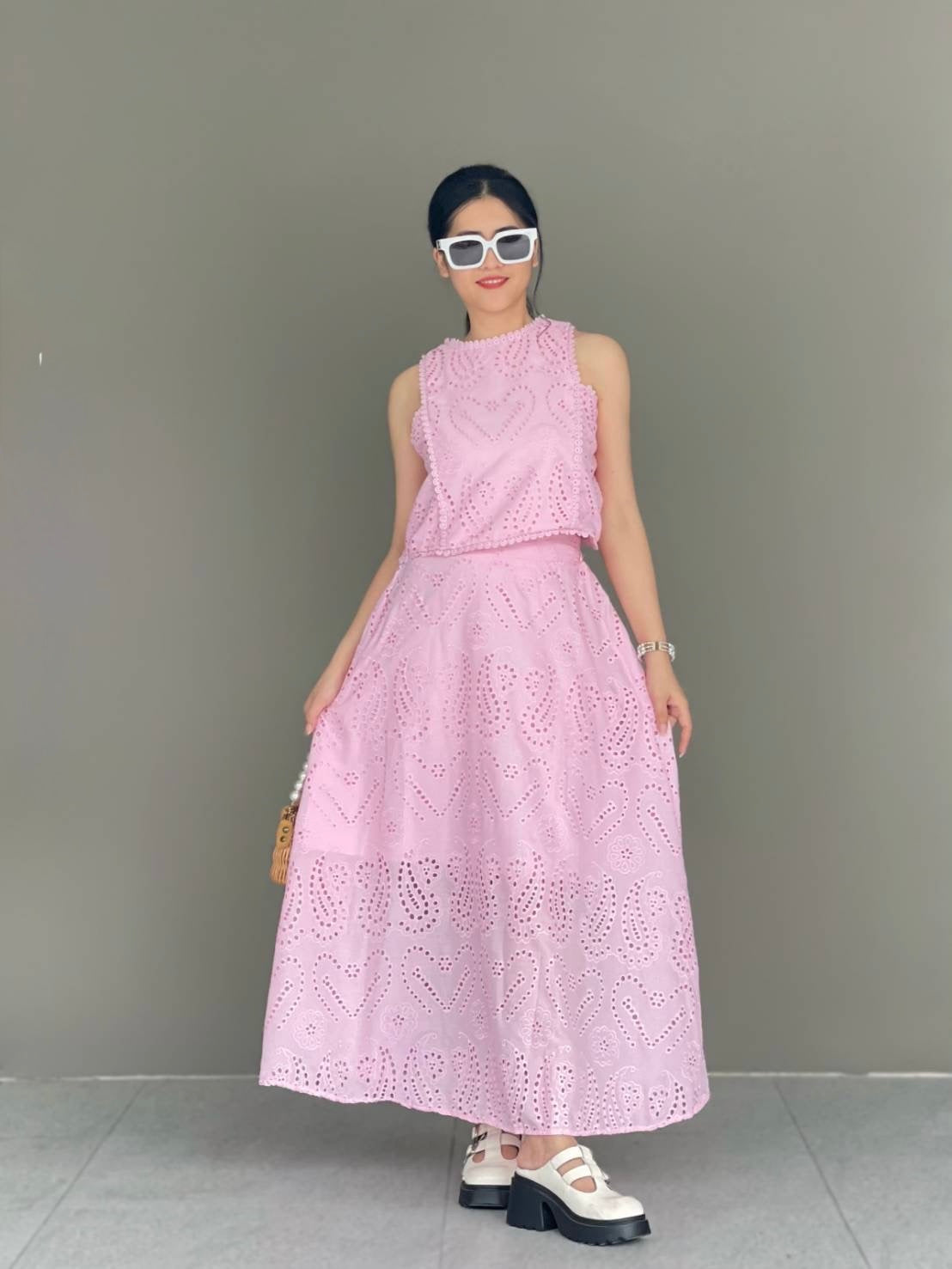 colors: pink, blue, white, black